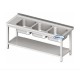Sturdy Metal Table with Three Sinks & Utility Shelf